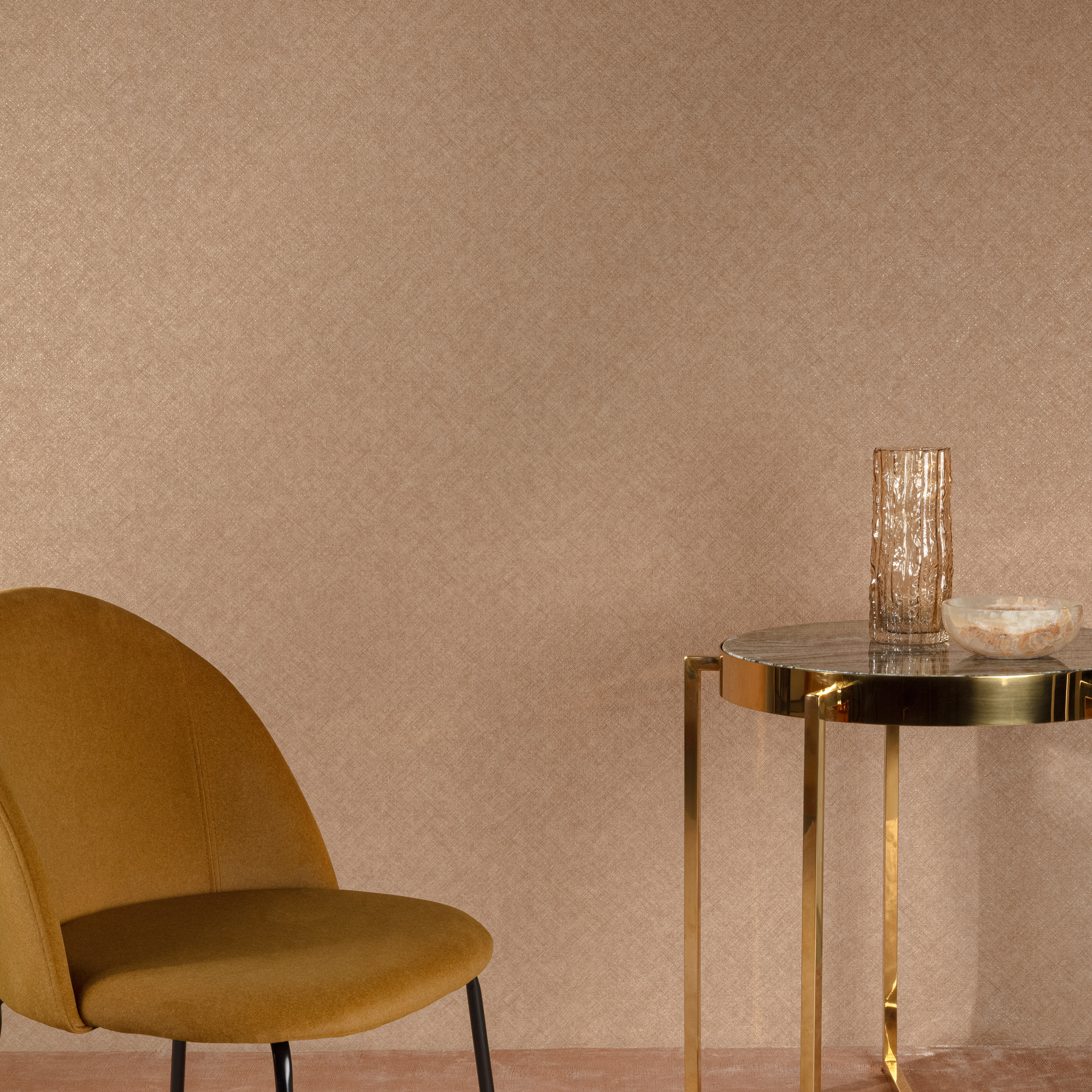 В основе коллекции — мотивы с эффектом текстильной поверхности. Они напоминают мягко натянутую ткань, где свет скользит по волокнам, создавая живую, тёплую игру оттенков. Такие обои наполняют интерьер спокойствием, делают его визуально мягче и уютнее, идеально подходя как для жилых пространств, так и для камерных рабочих зон. Палитра варьируется от природных нейтральных тонов до глубоких, благородных оттенков, позволяя легко подобрать гармоничное решение под любой интерьер.