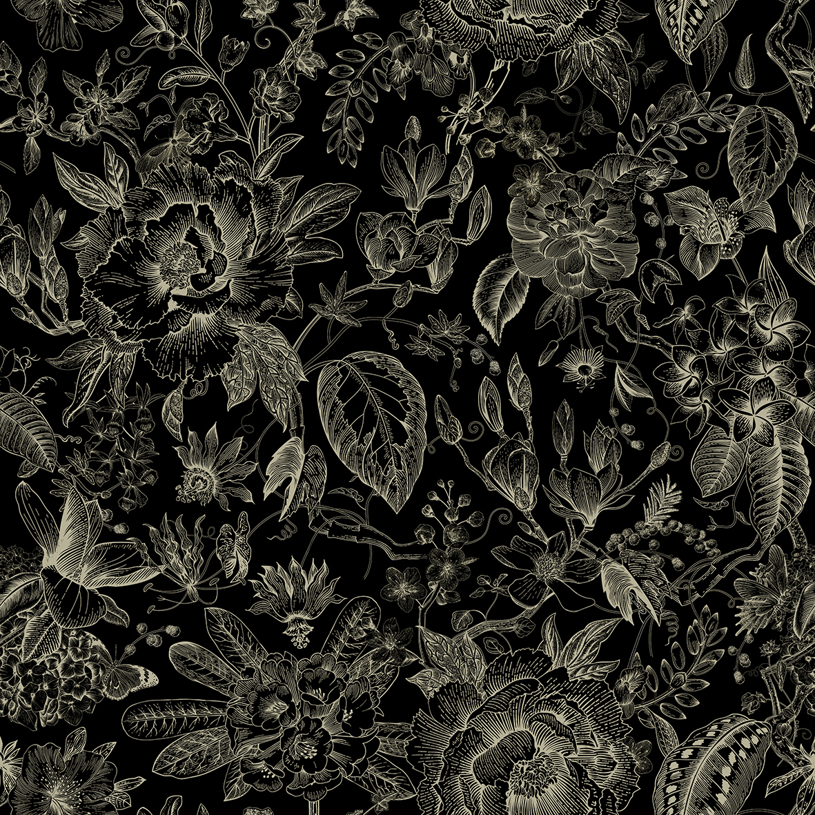 - Панно в трех цветовых сочетаниях с ярким дизайном черно-белого женского портрета, увенчанного красочным букетом в золотой раме. Компаньонами к сету выступают обои с традиционной широкой полосой.