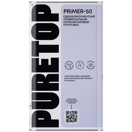 • Грунтовка PURETOP PRIMER-50 используется для подготовки оснований перед укладкой напольных покрытий или фанеры с глубоким проникновением в структуру материала.