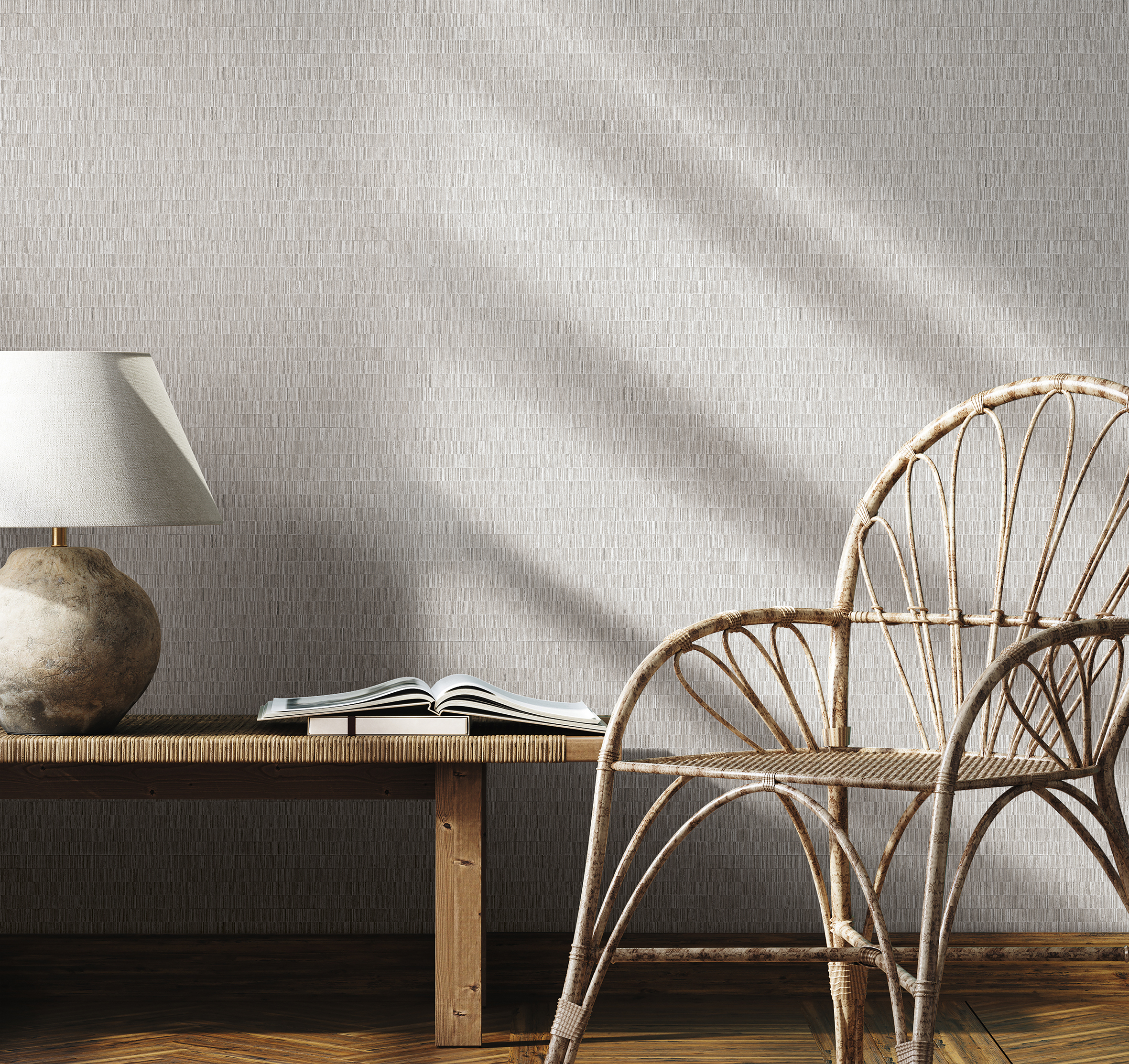 Полосы, вдохновлённые природой. Лёгкие и упорядоченные, они напоминают стройные силуэты сухоцветов. Эта ритмика успокаивает взгляд, создаёт ощущение воздушности и расширяет пространство. Простота линий в сочетании с утончённой текстурой превращается в элегантность — строгую, но очень живую.