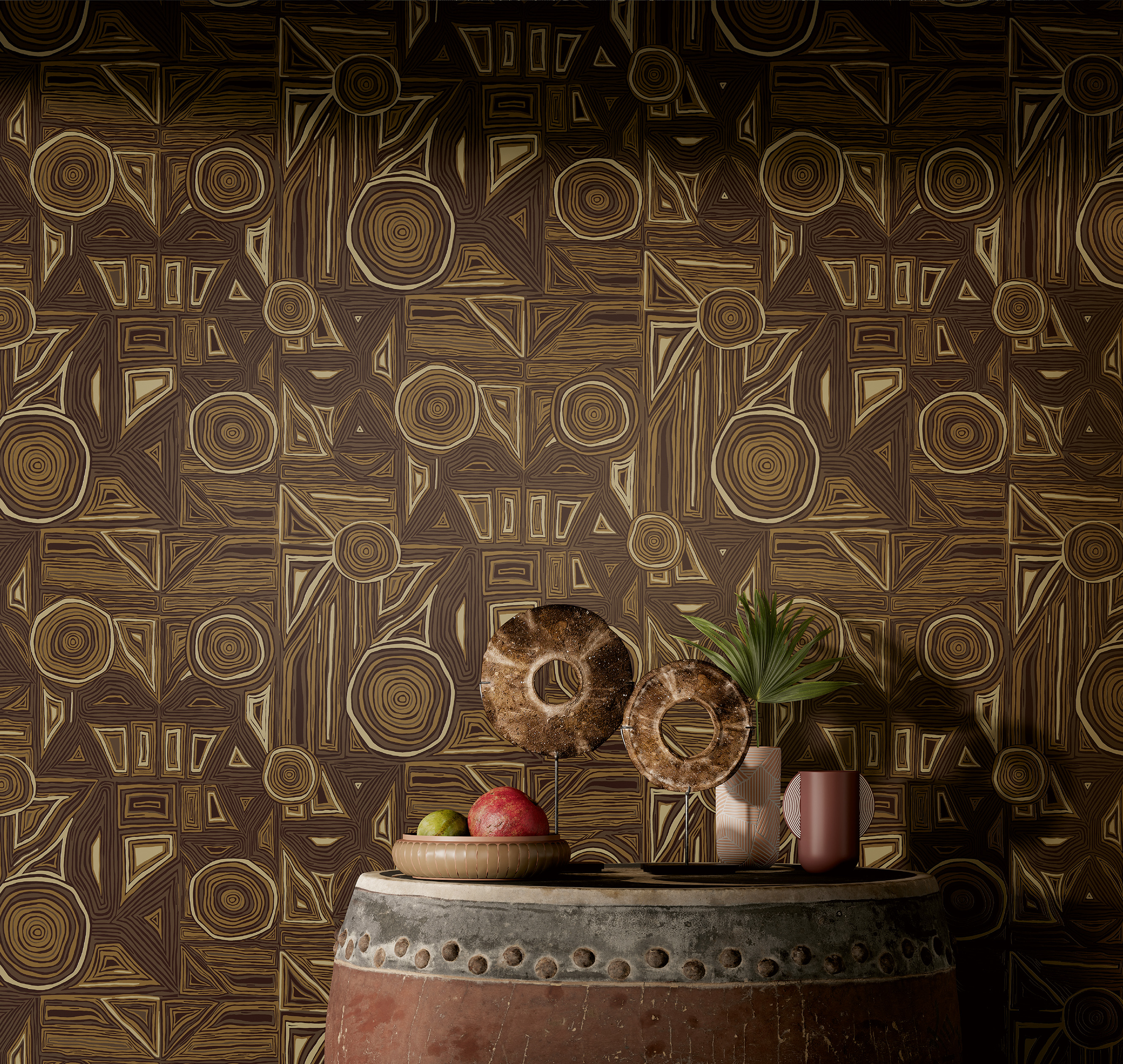 В каталог «Полинезия» вошли дизайны, настолько же разнообразные по стилю и исполнению, насколько многогранны искусство и природа этой уникальной местности. Здесь нашли отражение древнейшие виды ремесел коренных жителей полинезийских островов, например, филигранная резьба по дереву народа маори, поражающая тонкостью и изяществом фактурных линий и плавных геометрических фигур, и сакральные защитные орнаменты острова Самоа, в чьих витиеватых, фантазийных формах зашифрованы целые истории жизни. Без внимания создателей коллекции не остались и живописные пейзажи Полинезии, которые были перенесены на полотна обоев в виде утонченных флористических рисунков в крафтовом стиле