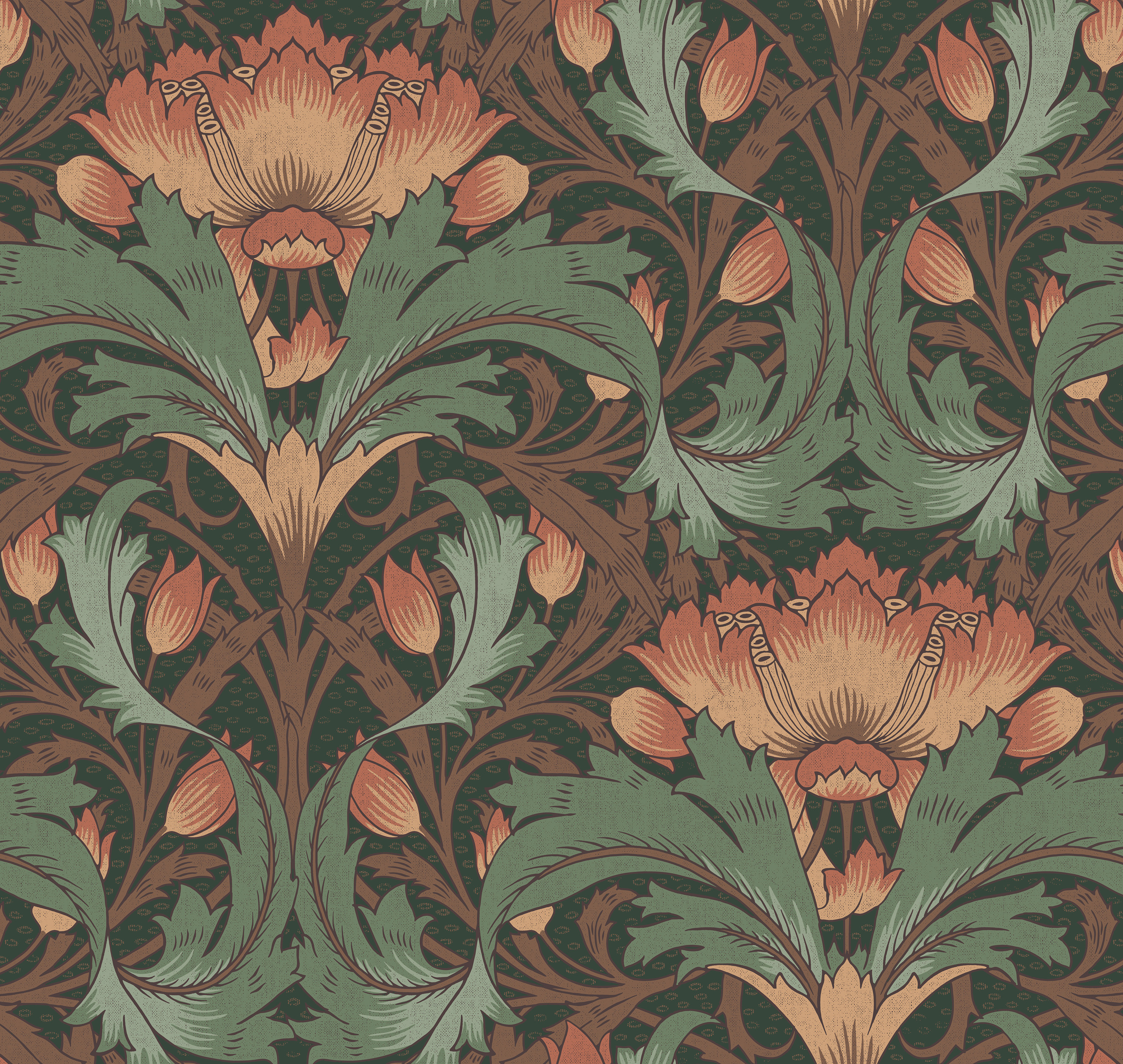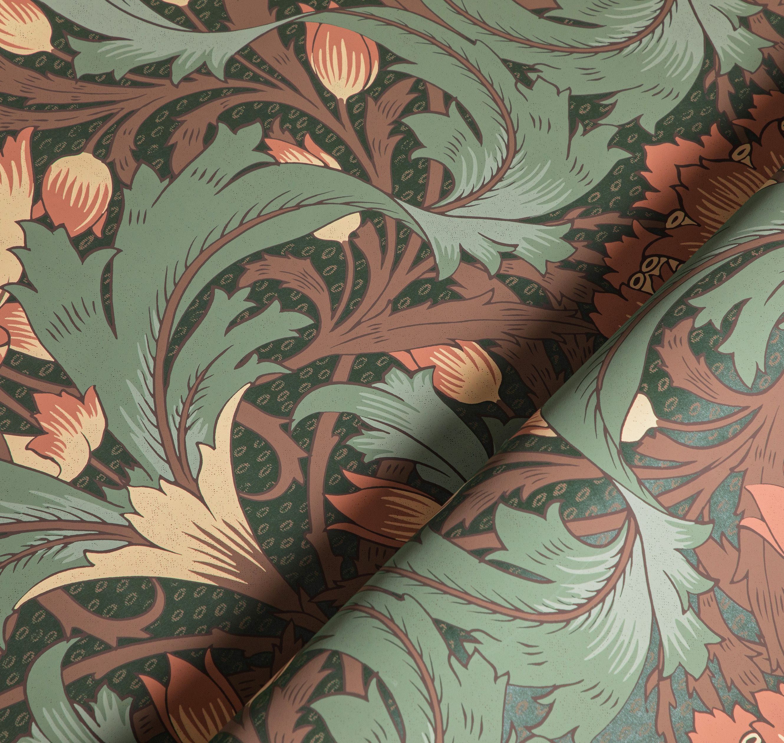 Это органичное собрание дизайнов мастерски соединяет различные техники и приемы создания рисунка, отражающие стилистическое разнообразие творчества времен Викторианской эпохи. Здесь встречается характерное для традиционной живописи тех лет изображение лесной дубравы, построенное на тонких цветовых переходах, наивные иллюстрации со сказочными сюжетами, словно сошедшие со страниц рыцарских романов и легенд, и смелые мотивы с представителями красочной экзотической фауны в колониальном стиле. Жемчужиной этой коллекции стал архивный паттерн в духе Уильяма Морриса и художественного