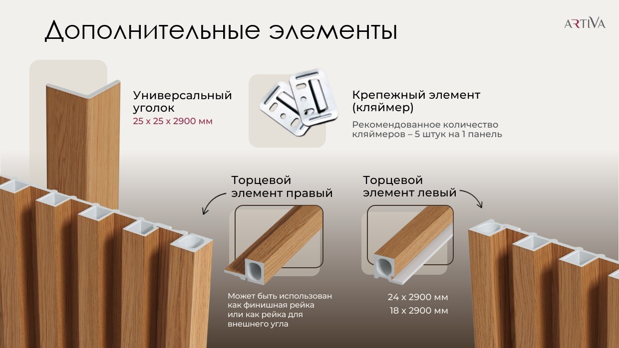 Стеновая реечная панель WPC Крем, 290x16,8 см | арт. artiva wpc 18 Крем