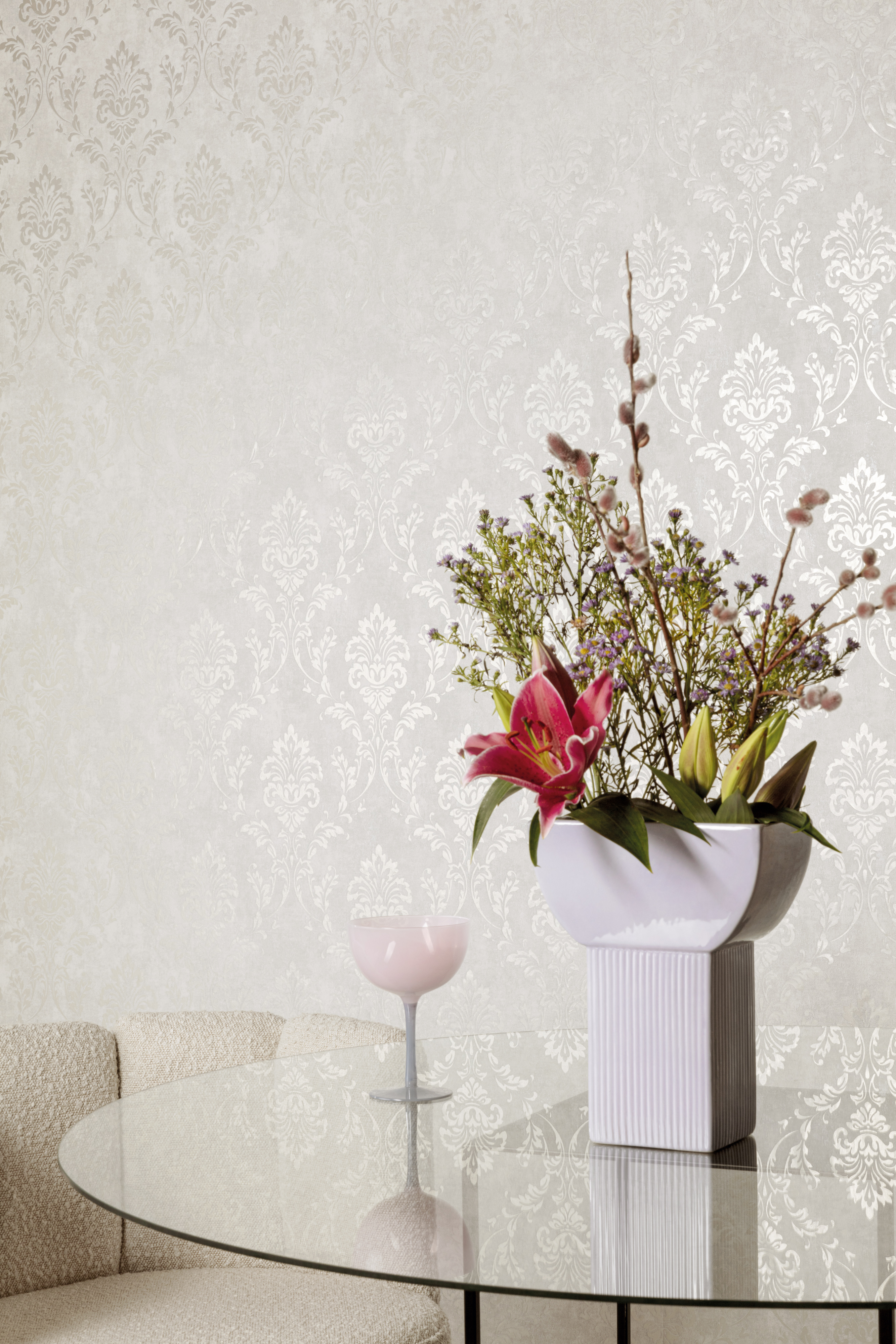 В коллекции Universe 5 вы встретите элегантный, лаконичный дамаск, всегда отвечающий за создание в интерьере атмосферы роскоши и изыска, но с намеком на современность. Их изящные линии и орнаменты придают помещению особый характер, делая его неповторимым.