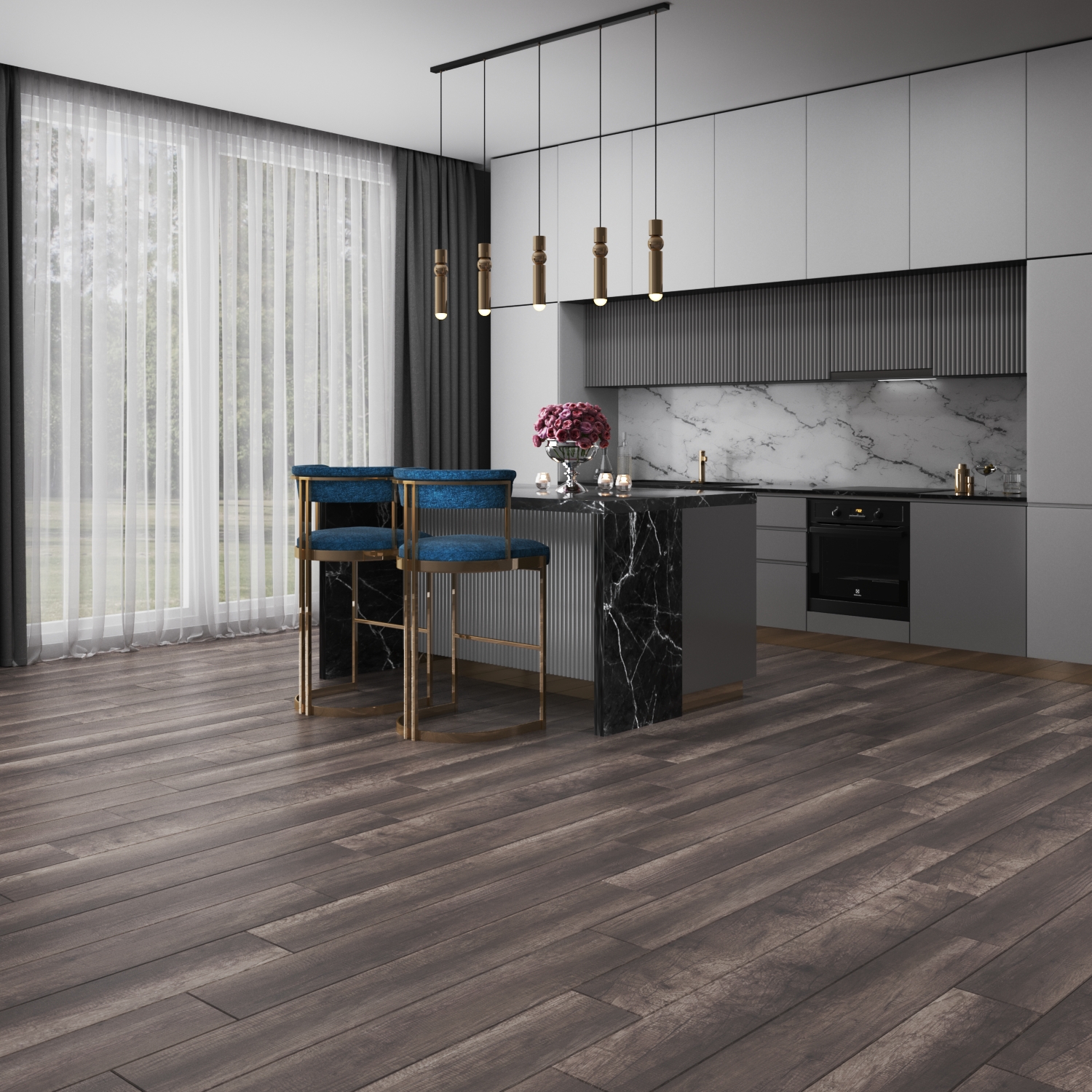Натуральные оттенки дуба, приятная матовая фактура и классический формат доски создают уютную и гармоничную атмосферу.