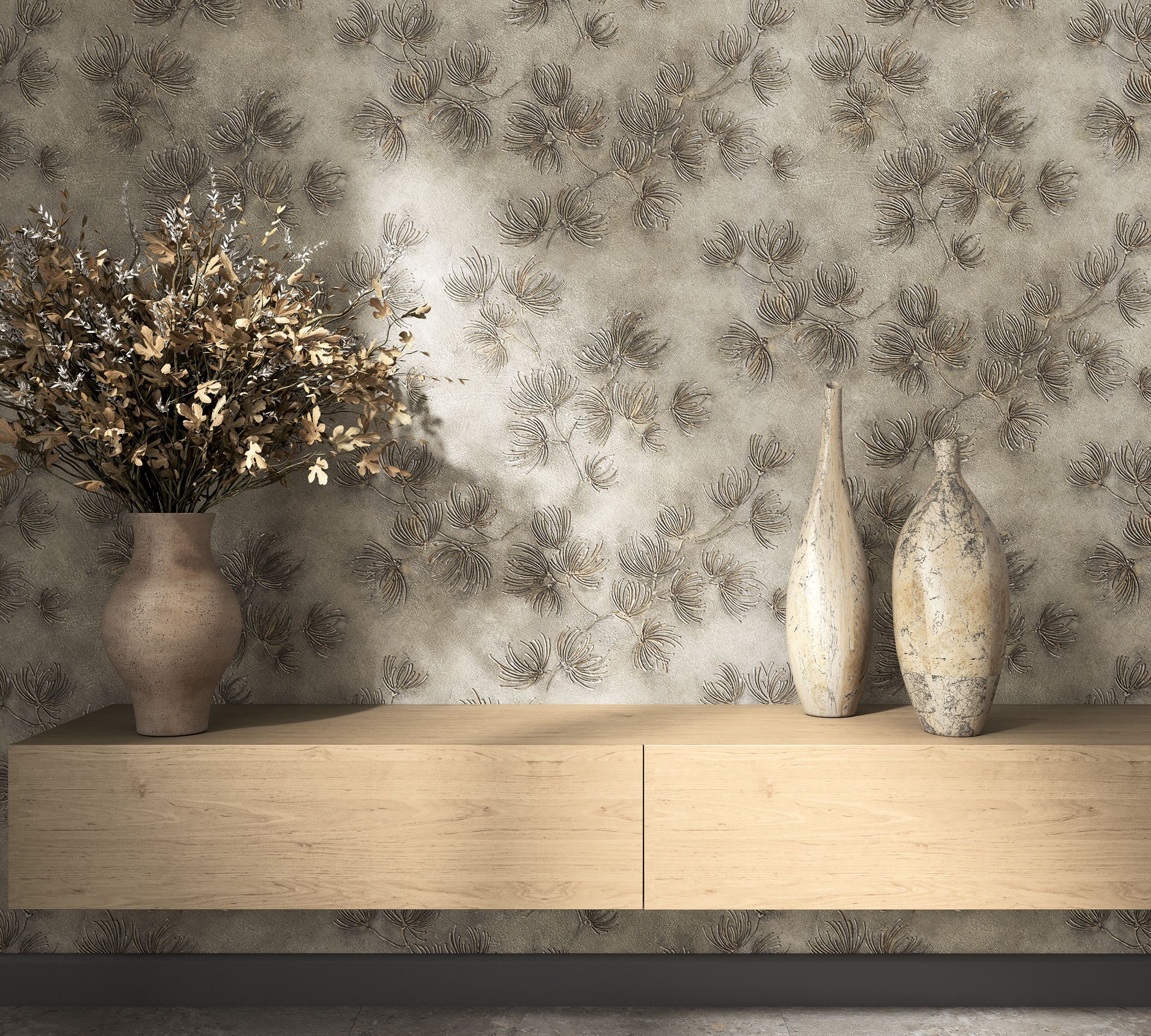 В её рисунках угадываются слоистые линии горных пород — строгие, но удивительно гармоничные, словно сама природа подсказала форму. Матовые, мягко приглушённые тона и тонкая, тактильная поверхность дарят чувство тепла и уюта, словно стены становятся продолжением вашего дома, его сердцем и дыханием.