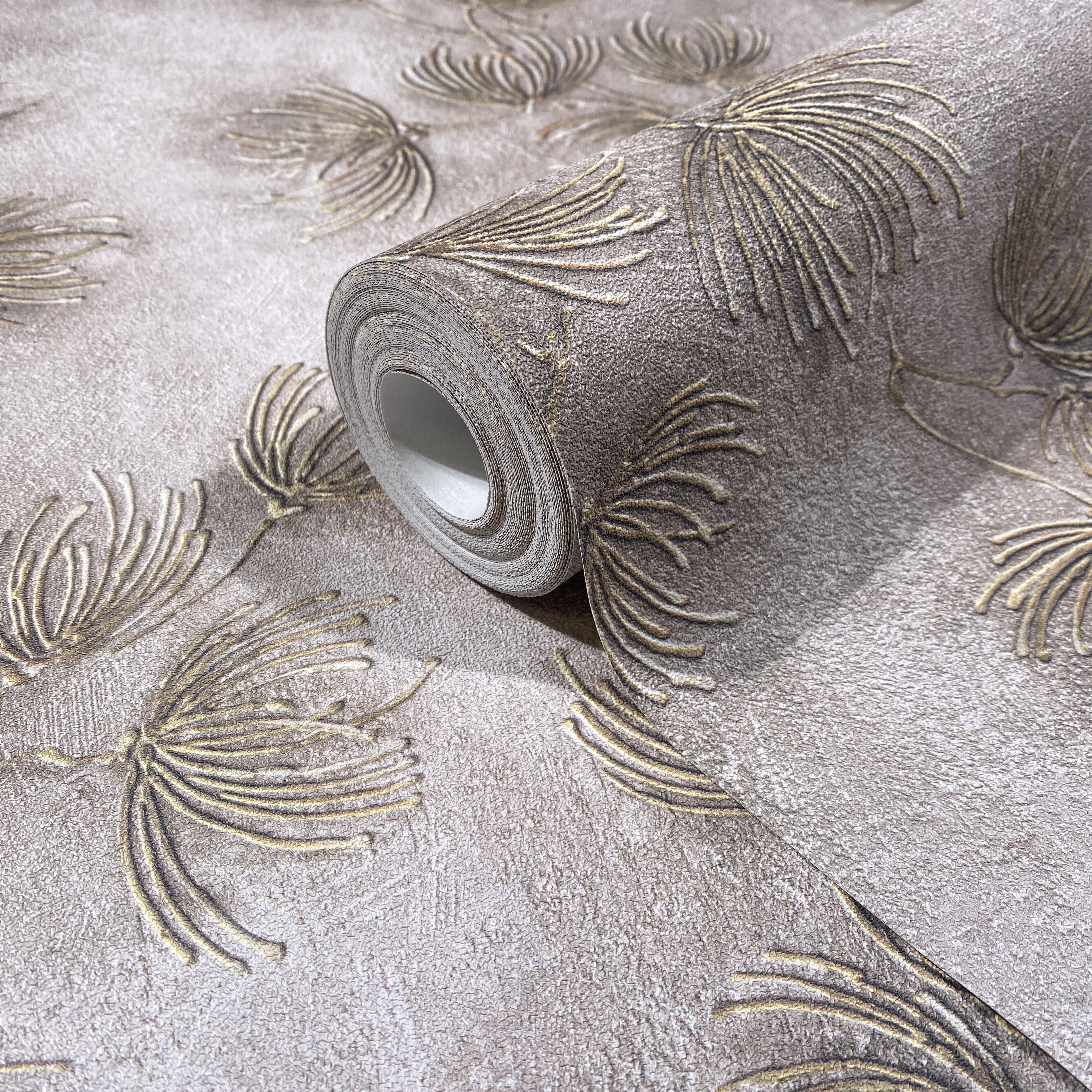 В её рисунках угадываются слоистые линии горных пород — строгие, но удивительно гармоничные, словно сама природа подсказала форму. Матовые, мягко приглушённые тона и тонкая, тактильная поверхность дарят чувство тепла и уюта, словно стены становятся продолжением вашего дома, его сердцем и дыханием.