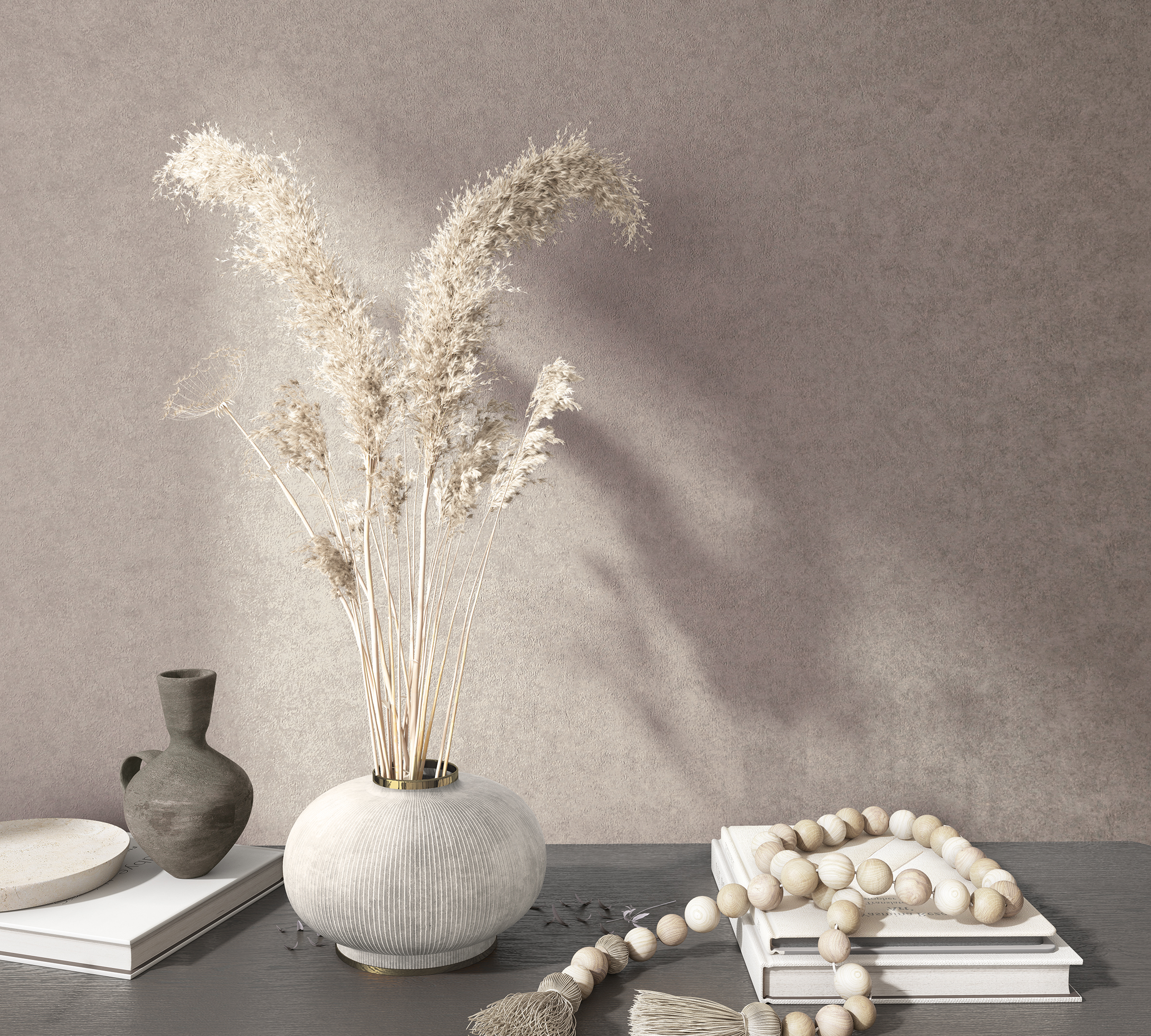 Как стены старинного дома, выгоревшие под солнцем, фактура обоев, напоминающая известковую штукатурку, хранит в себе естественную красоту и спокойствие ручной работы. Мягкие переходы оттенков будто растворяются в свете, создавая игру полутонов и лёгкое мерцание глубины. Интерьер наполняется живым теплом и атмосферой умиротворённого уюта.